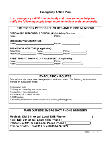 An important part of any organization's first aid and emergency action plan is to make sure to have communicated and provided documentation at the facility to include appropriate and designated emergency numbers to call and emergency action plan steps.